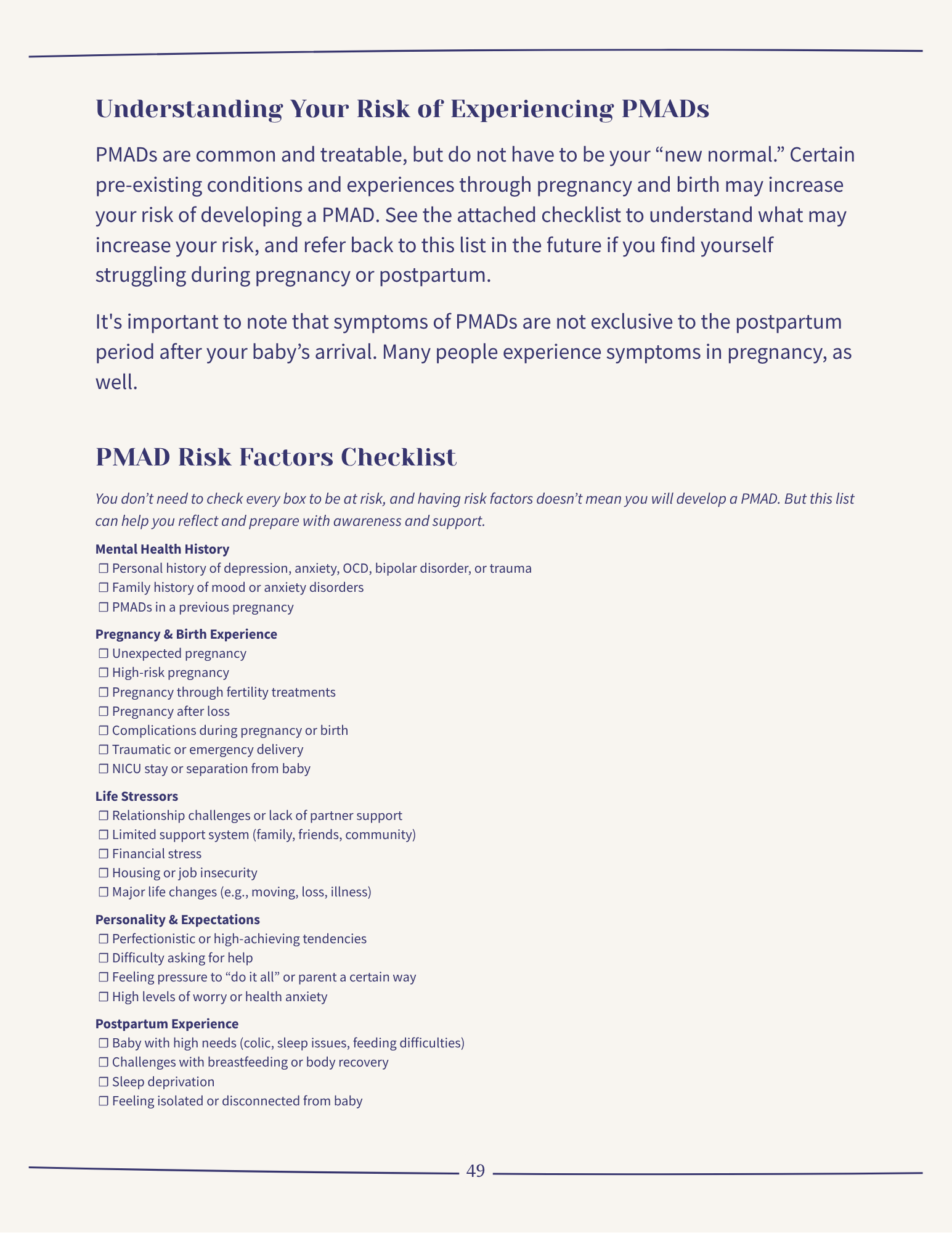 Prepare your relationship for the transition into parenthood with this interactive workbook curated for expecting couples. Together, you'll build a stronger understanding of your relationship, learn practical communication tools, explore ways to deepen emotional closeness, and engage in guided journaling to prepare for life after baby arrives. Your workbook will guide you through discussions on expectation setting, making your plan for shared responsibilities, inform you both about how to recognize and support one another through common postpartum mental health challenges (PMADs), and more.
